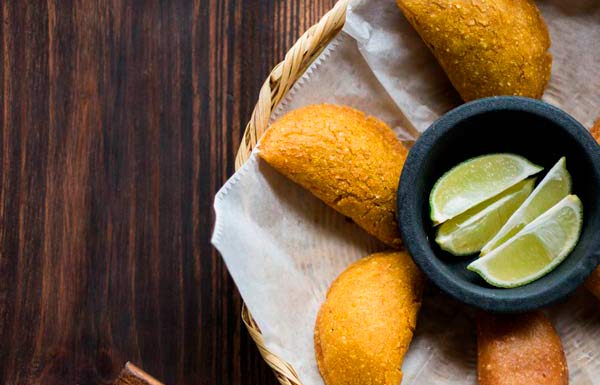 Empanadas or Fried green plantains that comes with our home made criolla sauce.